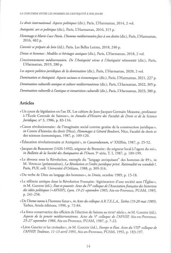Le contenu des articles et les sommaires des ouvrages sont accessibles par les liens dans chaque rubrique.